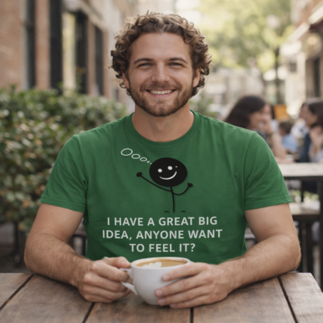 staying grounded in reality. With a crisp monochrome finish, it’s not just funny — it’s stylish,